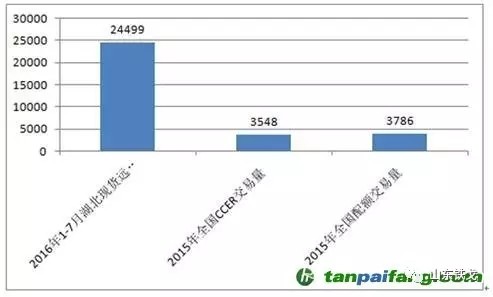 數據來源:公開資料整理三、碳排放交易市場規模可達2000億2015年7個試點碳市場累計成交配額3786萬噸,總計成交額10億元。湖北碳市場成交量較大,其次是廣東。截至2015年底,碳排放市場累計成交配額6758萬噸。2016年4月27日,碳排放權現貨遠期交易產品在武漢推出,當日成交量達680余萬噸,成交額1.5億元。發改委2016年10月開始啟動配額分配工作,2017年1季度完成分配,然后即可交易。統一碳市場開啟后,配額總量將是七個試點2014年度配額總量的4倍,按現有的價格和換手率(約3%)估算,統一碳市場配額現貨交易規模將達40億元。衍生品市場交易規模大概是現貨規模的50倍,以此推算國內碳交易衍生品市場規模有望達2000億元。2015年各試點配額成交額