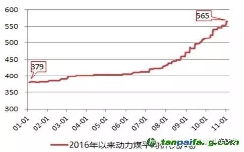 一、環保壓力加大,火電發電設備利用小時數下降隨著供給側改革的推進,2016年以來我國動力煤價格快速上升,價格已從年初的379元/噸至目前的565元/噸。與此同時,火電發電設備的平均利用小時數呈現下降趨勢,2016年1-9月火電平均發電設備利用小時數(累計值)近3071小時,同比下降6.5%。在同期我國發電總量上升4.1%的背景下,證明我國能源結構調整初見成效,電力發展對燃煤發電依賴程度減輕,有利于環境和資源保護。動力煤平均價格走勢
