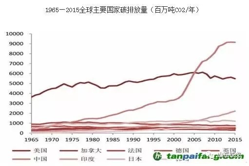 數據來源:公開資料整理二、統一碳排放市場即將開啟2017年我國擬建設統一碳排放交易市場,目前碳排放權交易配額分配方案已經上報國務院,第三批低碳城市試點名單即將出臺,碳排放交易市場將進一步規范,政策正式進入落地執行階段。1965—2015全球主要國家碳排放量(百萬噸CO2/年)