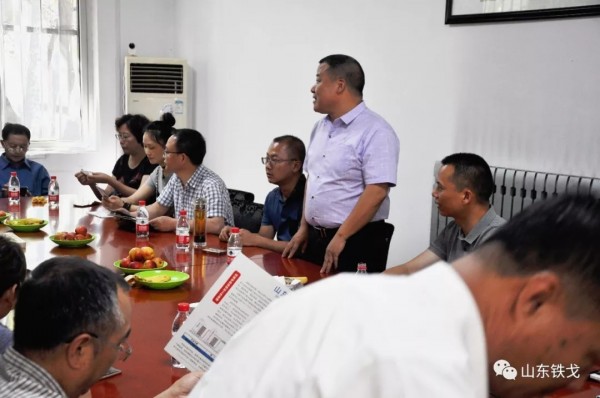 山東鐵戈總經理向來訪團成員們介紹了企業(yè)的發(fā)展情況。多年來公司緊緊圍繞“已發(fā)展科技創(chuàng)新為己任、已改善生態(tài)環(huán)境為使命”的這一戰(zhàn)略指導思想,持續(xù)實施科技創(chuàng)新、管理創(chuàng)新、制度創(chuàng)新等工作,目前公司已形成集科研、設計、生產、制造、整機裝備、銷售為一體的高新技術企業(yè)。